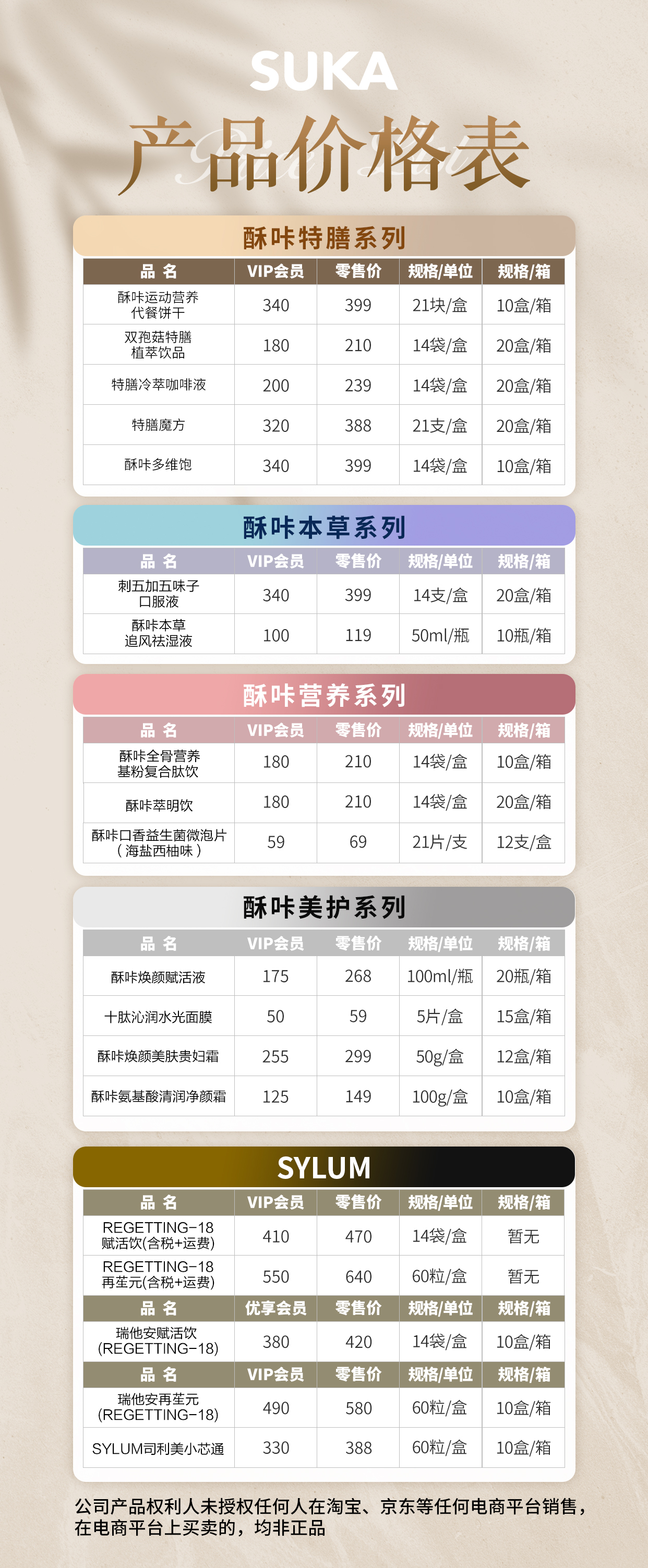 产品价格表(零售价-VIP)